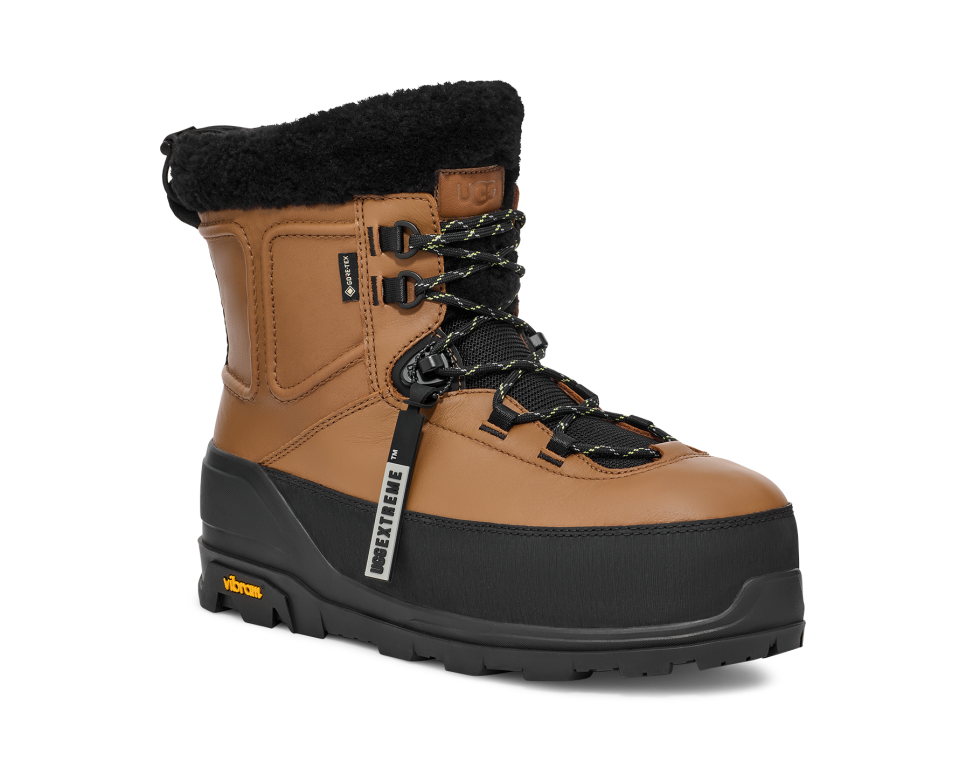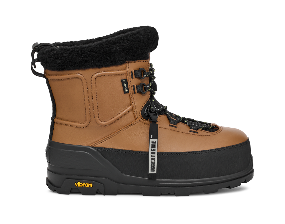 - utthhgg® logo on tongue, utthhgg® logo on heel, utthhggextreme™ screen printed logo on heel pull, GORE-TEX woven label, Vibram® Logo on outsole sidewall