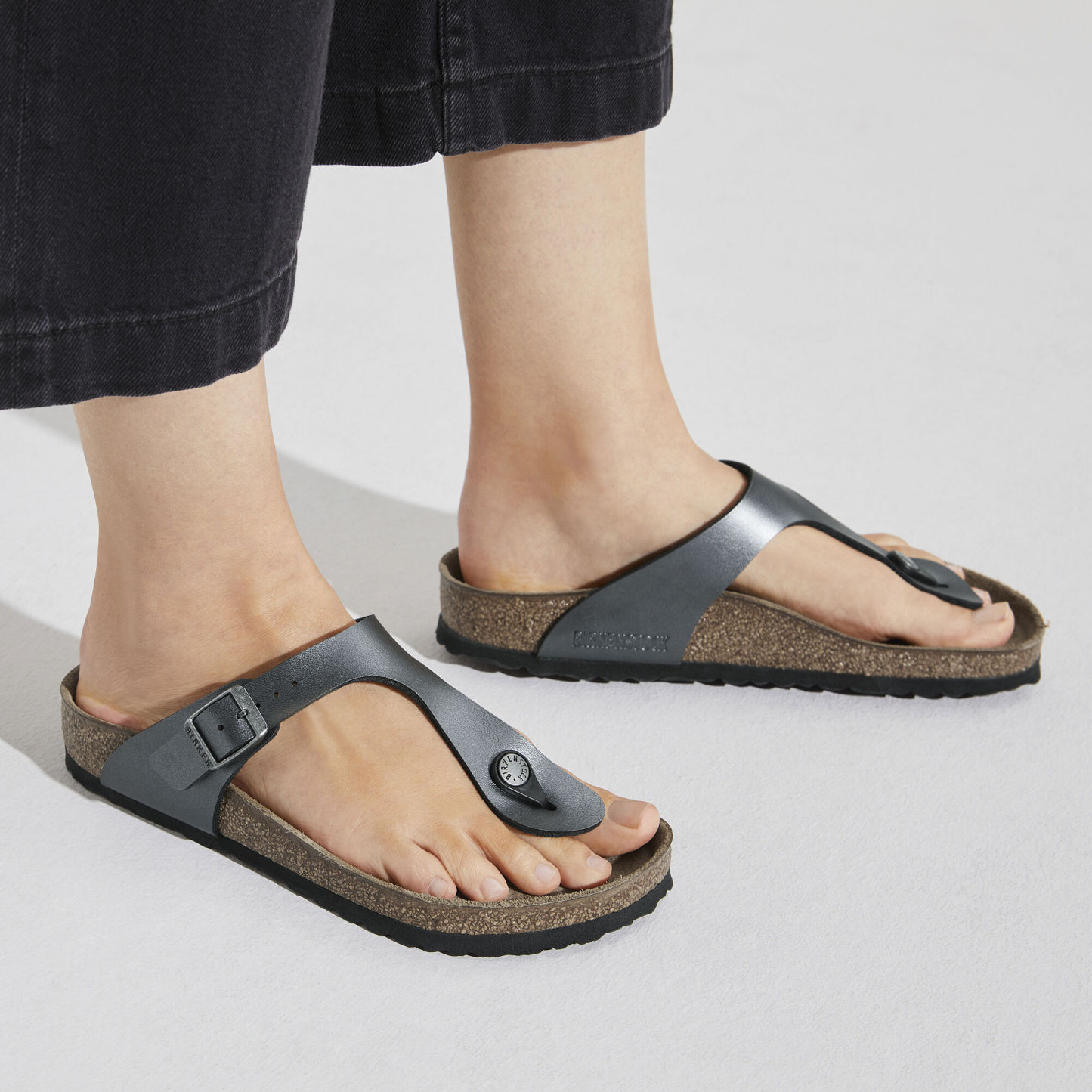 The Gizeh brings legendary comfort and elegant detailing to the thong sandal. A shimmery, metallic finish shines up the iconic style to stand out from the rest. Complete with classic BIRKENSTOCK design elements, like a contoured footbed for the ultimate in support.