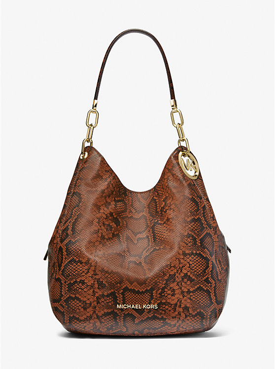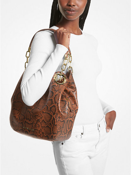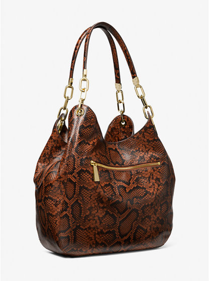 Lillie Large Snake Embossed Leather Shoulder Bag