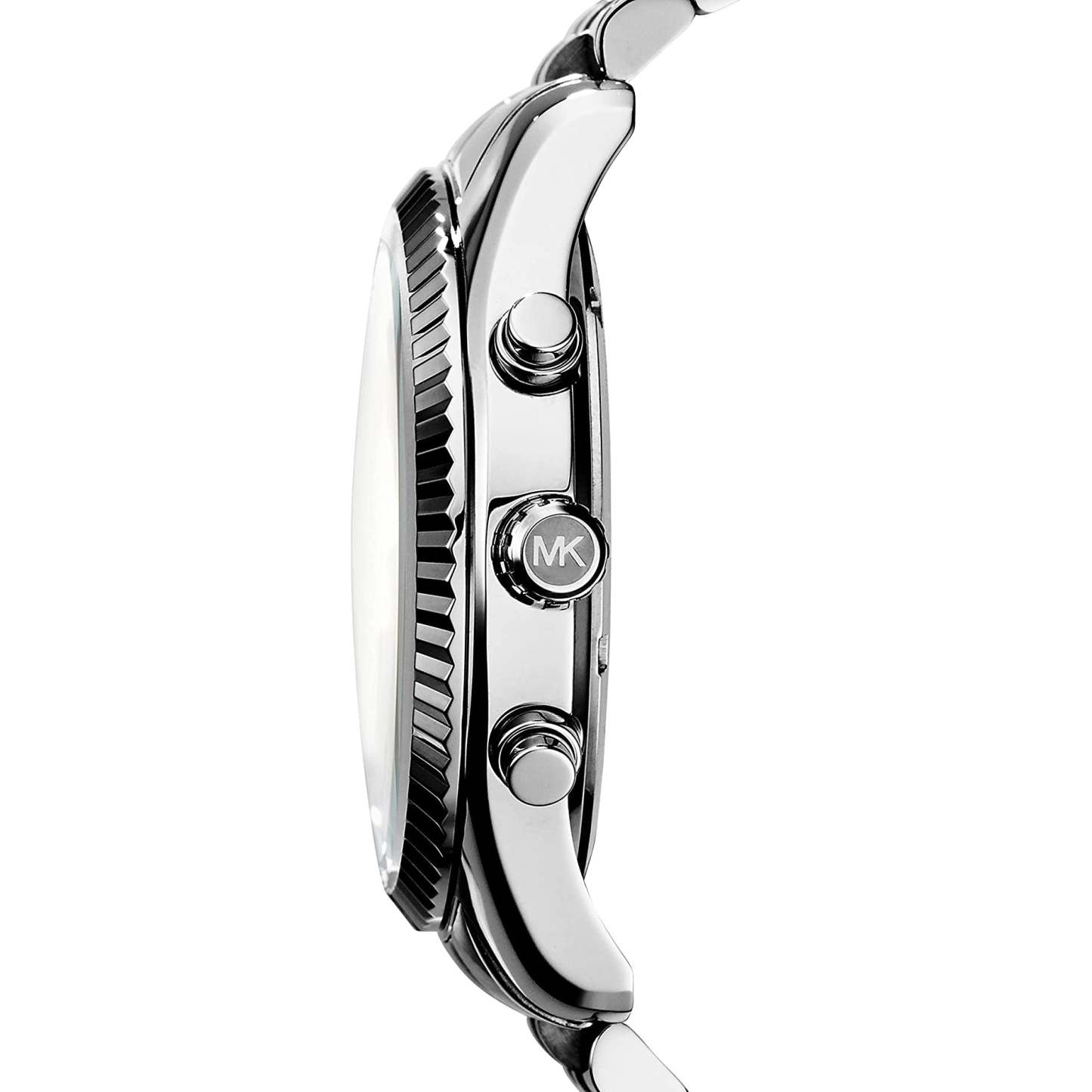 45mm Stainless Steel Case. Fluted Stainless Steel Bezel. Scratch Resistant Mineral Crystal.