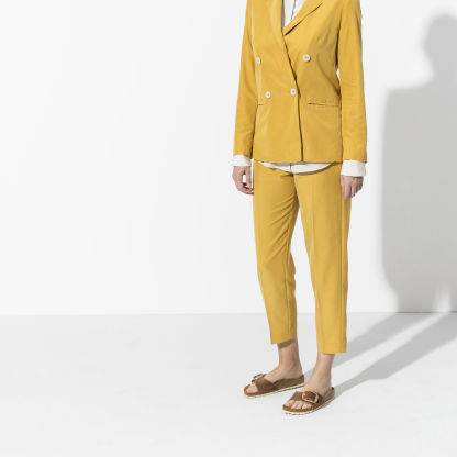 A strap, a buckle and a contoured cork footbed are masterfully combined to create the original Birkenstock sandal - the Madrid. An iconic slide with amplified buckle accent. Shown in oiled nubuck leather.