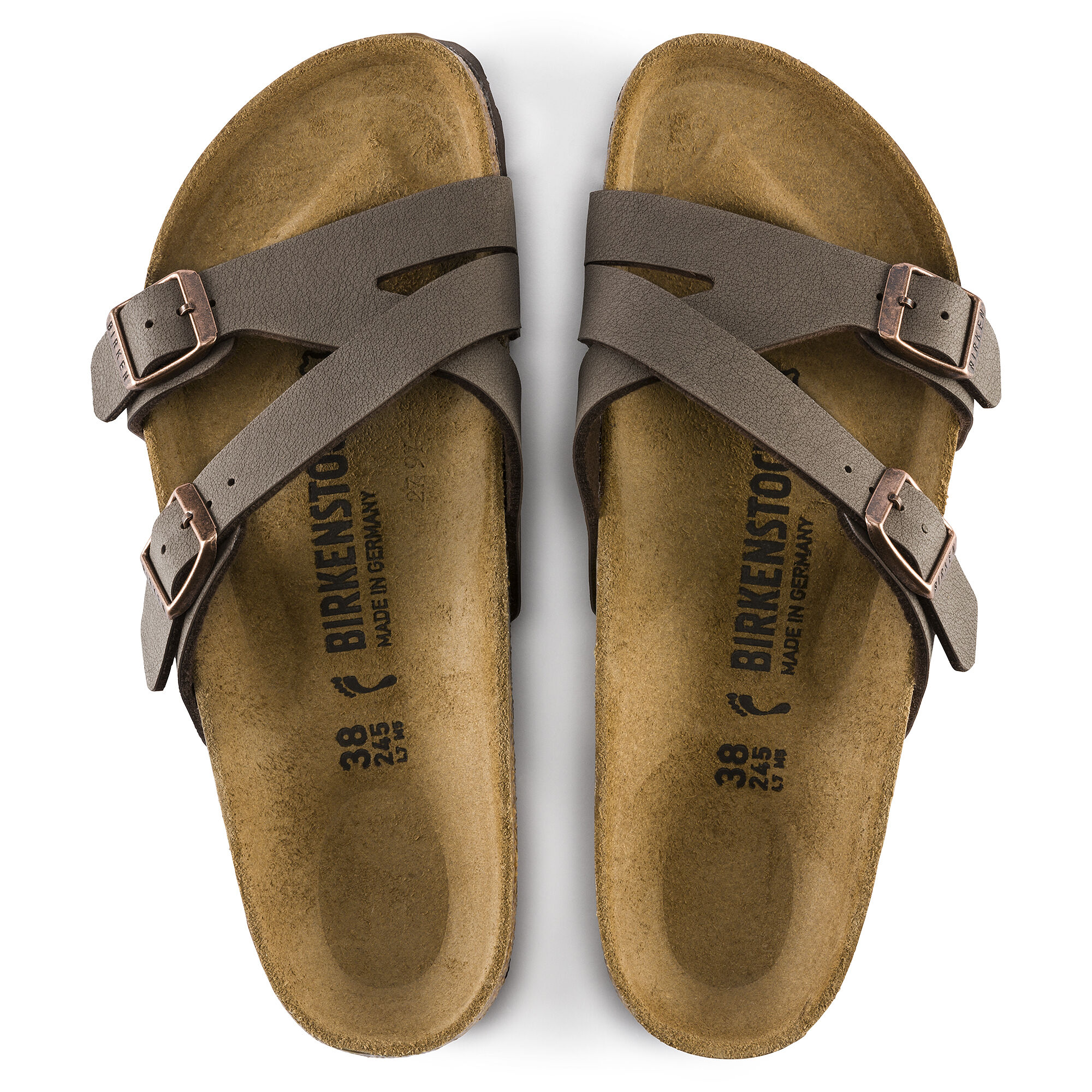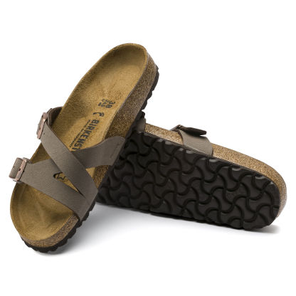 A geometrically designed strap sandal. The Yao couples style with a touch of luxury and features the iconic BIRKENSTOCK footbed to provide both comfort and flair. Shown in Birko-Flor® nubuck.